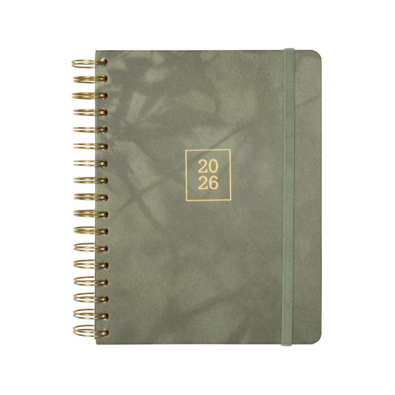- Agenda de espiral - Día página - Cubierta de polipropileno opaco - Uñero microperforado - Goma elástica - Espiral simple