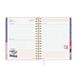 - Agenda de espiral - Día página - Cubierta extra dura de cartón - Uñero microperforado - Cierre de goma - Espiral metálico - Incluye adhesivos - Hojas de notas dotted