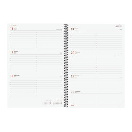 - Agenda de espiral - Día página - Cubierta de cartón extra rígido forrado - Uñero microperforado - Espiral simple