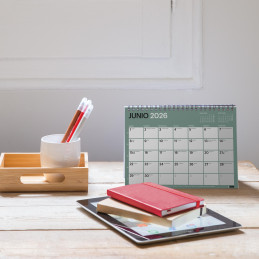 - Calendario sobremesa - Espiral doble metálico - Espacio para anotaciones - Con mes anterior y posterior - Formato 19x19cm