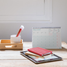 - Calendario sobremesa - Espiral doble metálico - Espacio para anotaciones - Con mes anterior y posterior - Formato 14x15cm