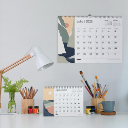 - Calendario de pared - Espiral doble - Con mes anterior y posterior - Formato hoja 21,5x32,5cm - Adhesivos temáticos - Listas para anotaciones - Set de notas engomadas