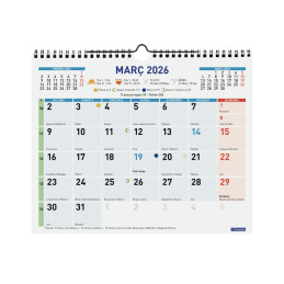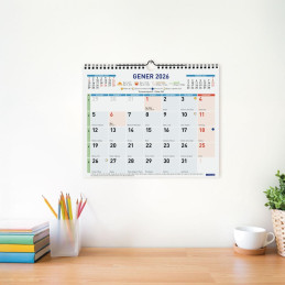 - Calendario de pared - Espacio para anotaciones - Espiral doble y colgador - Con mes anterior y posterior - Formato 34x32cm