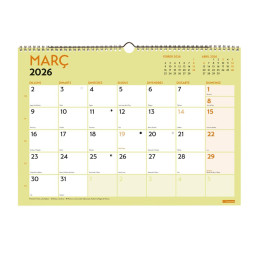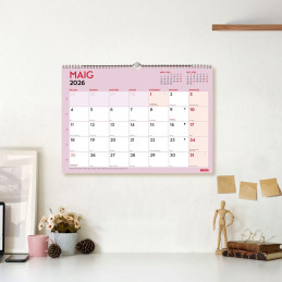 - Calendario de pared - Espacio para anotaciones - Espiral doble y colgador - Con mes anterior y posterior - Formato 21x15cm