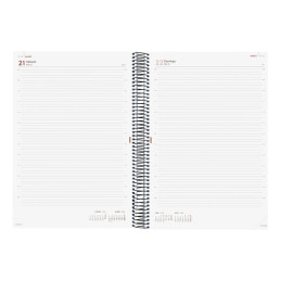 - Agenda de espiral - Día página - Cubierta de cartón extra rígido forrado - Uñero microperforado - Espiral simple