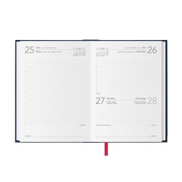 - Dietario encuadernado - Día página - Contiene 400 páginas - Cabecera en 4 idiomas - Cubierta en geltex con cartón contracolado - Cinta de registro - Formato 8º