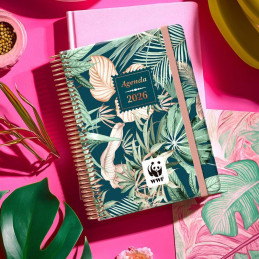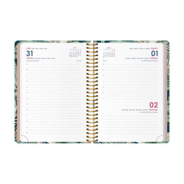 - Agenda de espiral doble - Semana vista - Cubierta de cartón forrado - Uñero microperforado - Cierre de goma - Incluye adhesivos temáticos - Pestañas troqueladas