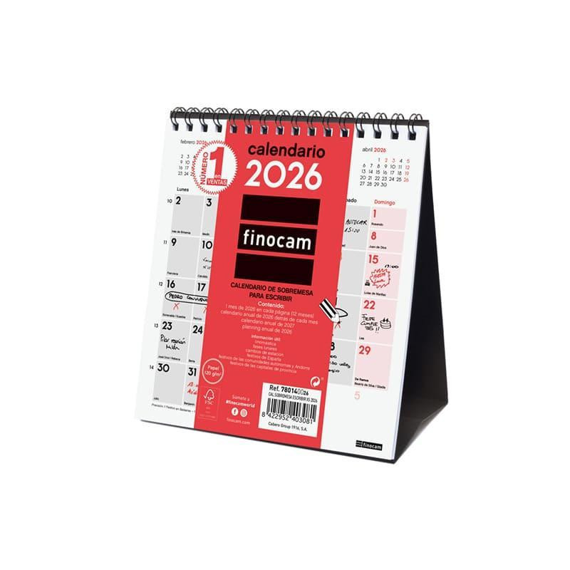 - Calendario sobremesa - Espiral doble metálico - Espacio para anotaciones - Con mes anterior y posterior - 12 pestañas - Formato 19x19cm