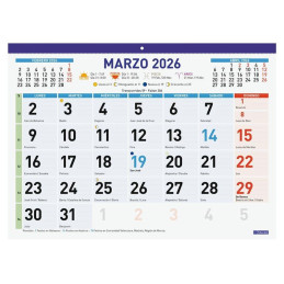 - Calendario de pared - Espacio para anotaciones - Espiral doble y colgador - Con mes anterior y posterior - Formato 42x29,6cm