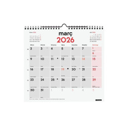 - Calendario de pared - Espacio para anotaciones - Espiral doble y colgador - Con mes anterior y posterior - Formato 42x29,6cm