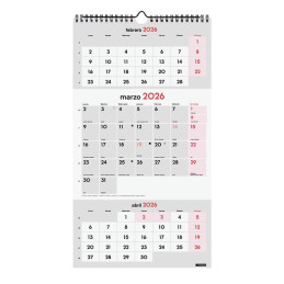 - Calendario encolado - Números grandes - Agujero para colgar - Hojas microperforadas - Con mes anterior y posterior - Formato 15x10,5cm
