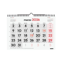 - Calendario de pared - Números grandes - Espiral doble y colgador - Con mes anterior y posterior - Formato 30x21cm