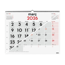 - Calendario de pared - Doble funcionalidad - Números grandes - Espacio para escribir - Espiral doble y colgador - Con mes anterior y posterior - Formato 43x31cm