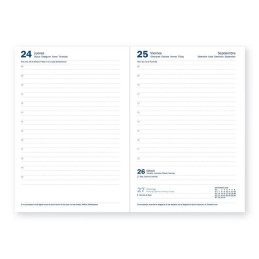 - Agenda encuadernada - Día página - Contiene 336 páginas - Cabecera en 5 idiomas - Cubierta con cartón almohadillado