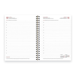 - Agenda de espiral Wire-O - Día página - Cubierta de cartón forrado - Uñero microperforado - Cierre goma plana - Espacio para notas