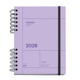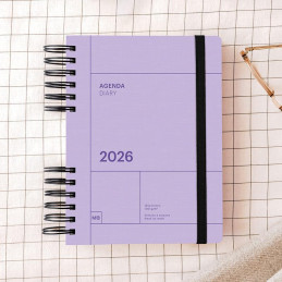 - Agenda de espiral - Día página - Contiene 336 páginas - Cabecera en 5 idiomas - Cubierta dura - Cierre de goma - Incluye 4 páginas de pegatinas
