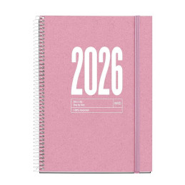 - Agenda de espiral - Día página - Cubierta de cartón 100% reciclado - Uñero microperforado - Goma elástica - Espiral simple - Papel reciclado