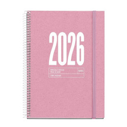 - Agenda de espiral - Semana vista - Cubierta de polipropileno opaco - Uñero microperforado - Goma elástica - Espiral simple