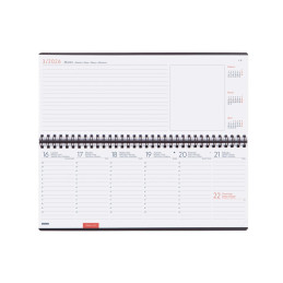 - Vade de sobremesa - Espiral doble metálico - Mes vista - Con mes anterior y posterior - Espacio para notas - Formato 42x31cm