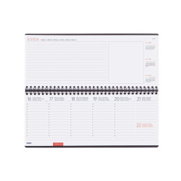 - Agenda de espiral Wire-O - Semana vista - Cubierta de cartón forrado - Uñero microperforado - Cierre goma plana - Espacio para notas