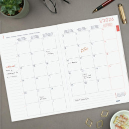 - Calendario sobremesa - Espiral doble metálico - Espacio para anotaciones - Con mes anterior y posterior - Formato 21x15cm