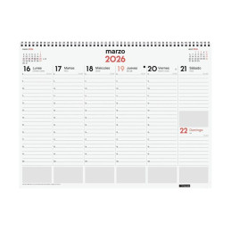 - Calendario encolado - Números grandes - Agujero para colgar - Hojas microperforadas - Con mes anterior y posterior - Formato 15x10,5cm