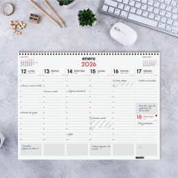 - Libreta planificadora - Espiral doble metálico - Semana vista - Hoja para notas - Formato 29x11,6cm