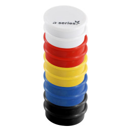 Incluye 2 imanes por color: amarillo, negro, azul, blanco y rojo.