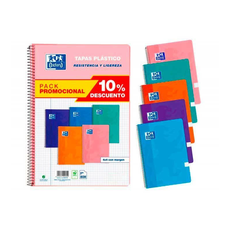 - Tapa de plástico - 80 hojas - Cuadrícula 4×4 con margen - Papel satinado de 90gr/m² de alta opacidad - Papel certificado:Paper by nature, FSC, PEFC - Paquete surtido de 5 colores: amarillo, rojo, rosa, verde y azul
