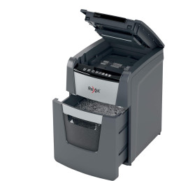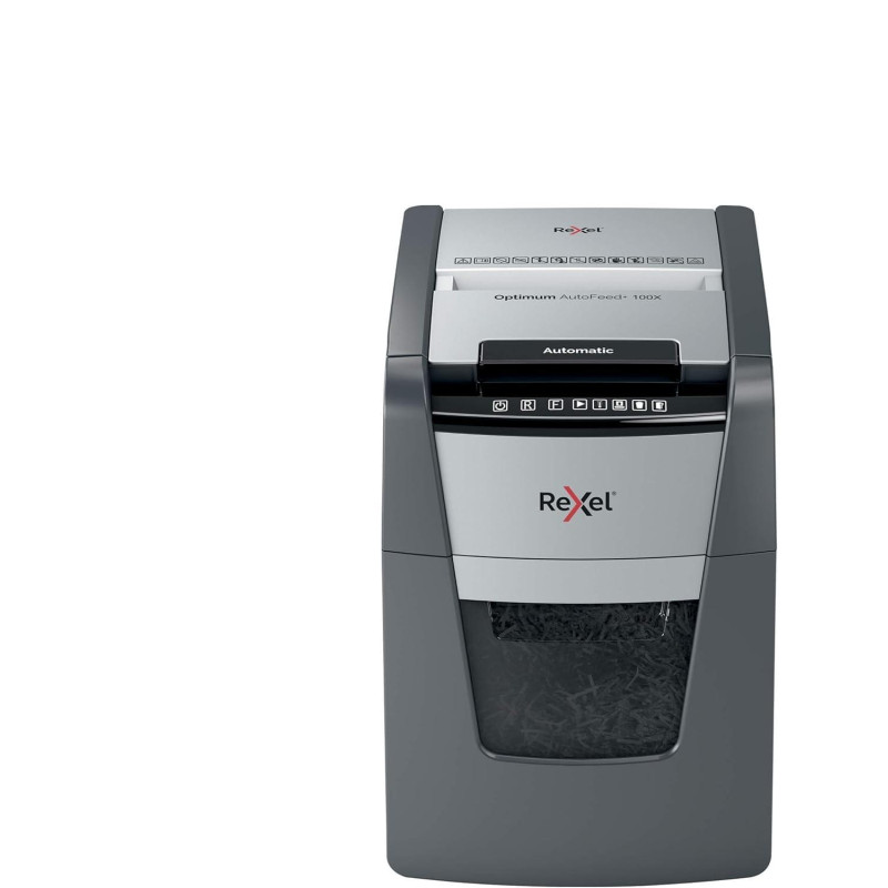Hasta un 98 % menos de tiempo en destruir, ahorre tiempo y dinero con las destructoras de autoalimentación. La destructora personal Auto+100X destruye de forma automática hasta 100 hojas (80 g/m2) en pedazos de microcorte P-5 (2x 5mm). No es necesario permanecer en pie para alimentarla con papel ni retirar primero las grapas o los clips. La alimentación automática y la papelera de 34L le permitirán cargar hasta 100 hojas A4 y desentenderse durante el funcionamiento. Dimensiones: 36,5x53x43cm.