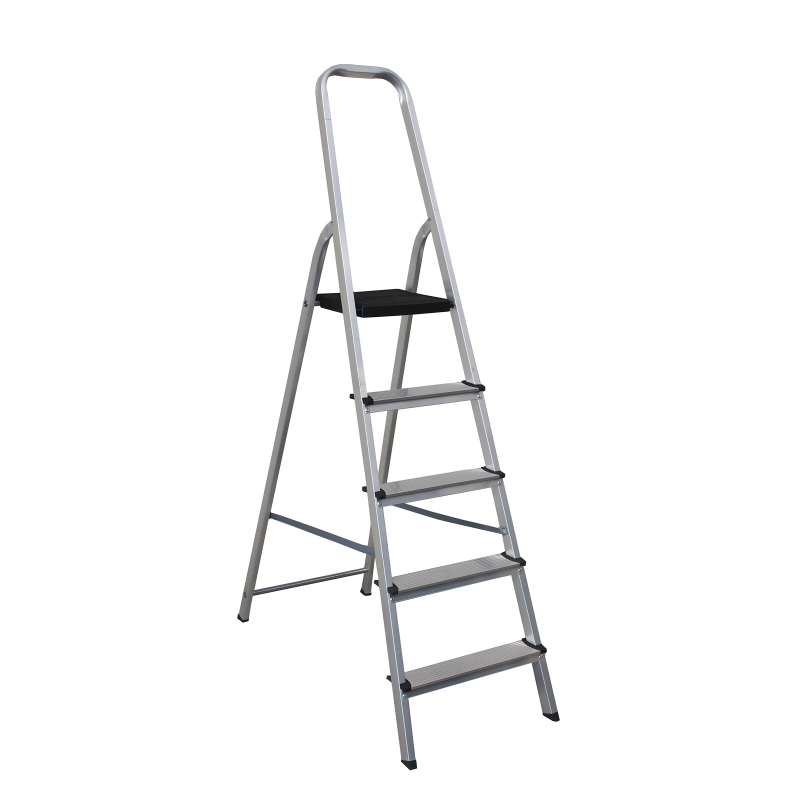 - Escalera taburete de aluminio plegable - Perfiles delanteros de 50x20mm. y traseros de 32x20mm. - Peldaños antideslizantes de 80mm. de ancho - Replano de 38x26cm. - Con anticierre de seguridad