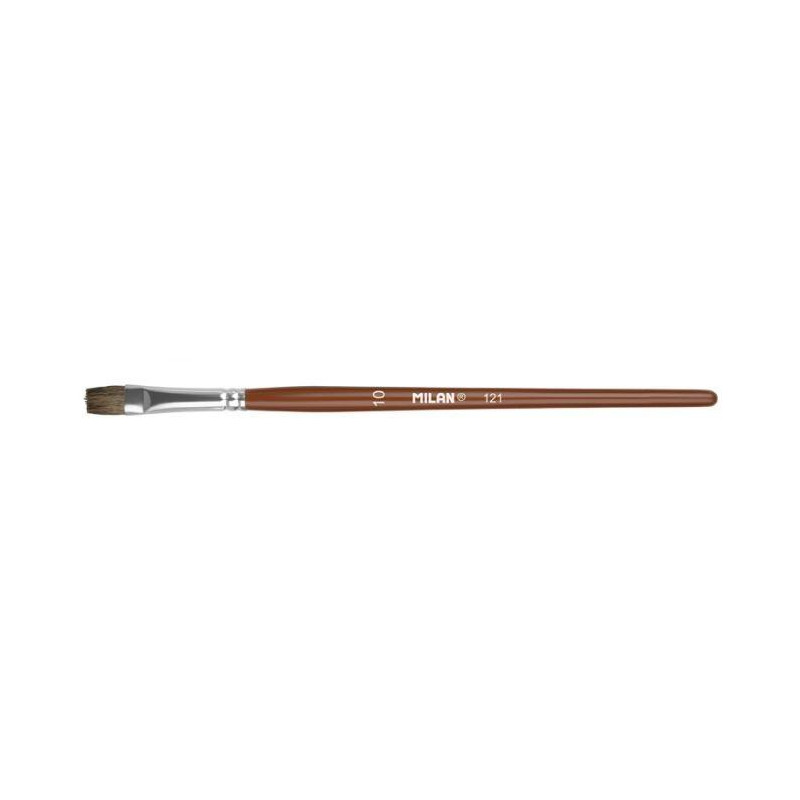 - Pincel plano con mango corto de madera - Barnizado en color natural y virola de aluminio - Composición: pelo natural de cerda Chungking - Adecuado para cola y barnices, témpera