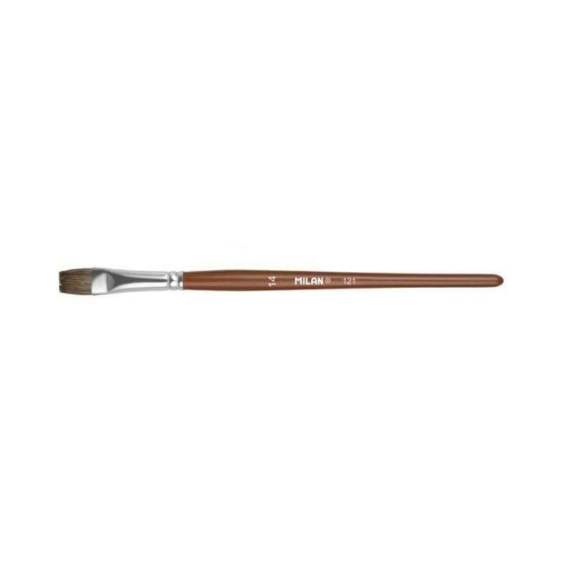 - Pincel plano con mango largo de madera - Barnizado en color natural y virola de aluminio - Composición: pelo natural de cerda Chungking - Adecuado para pintura al óleo y acrílico