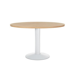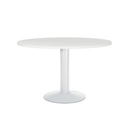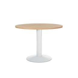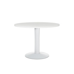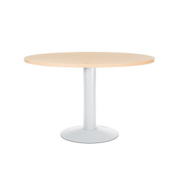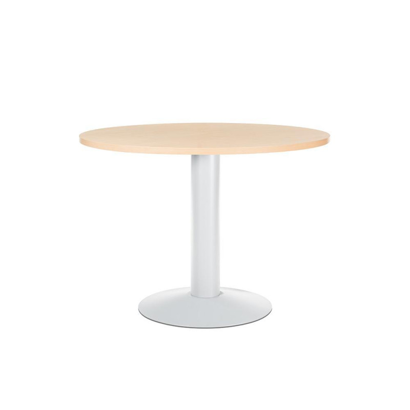 - Mesa de reunión circular - Ideal para la atención de clientes, proveedores o trabajos en grupo - Tablero fabricado en melamina - Pie de columna de plancha metálica pintada epoxy - Altura de la columna: 72cm.