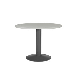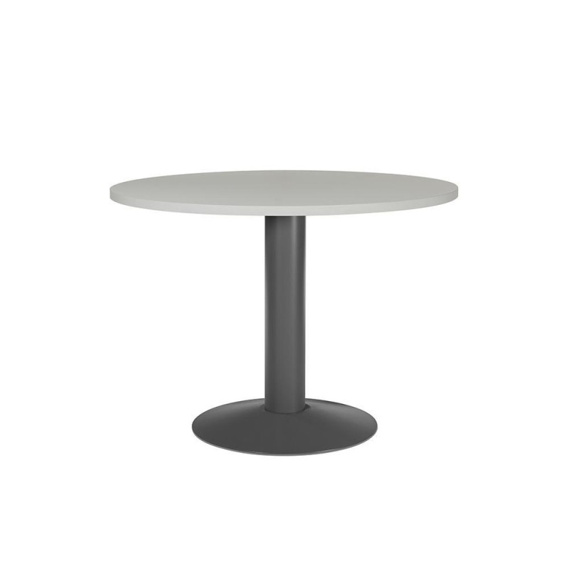 - Mesa de reunión - Forma circular - Sobre de melamina de 2,5 cm. de grosor - Canto de PVC de 2 mm. - Con pie de panel - Dimensiones: 100 cm. - Color: Aluminio - Gris