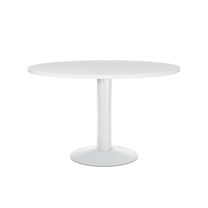 - Mesa de reunión - Forma circular - Sobre de melamina de 2,5 cm. de grosor - Canto de PVC de 2 mm. - Con pie de panel - Dimensiones: 100 cm. - Color: Haya - Blanco