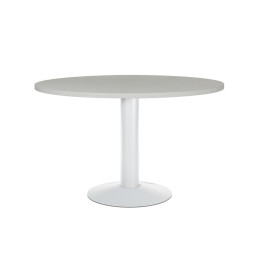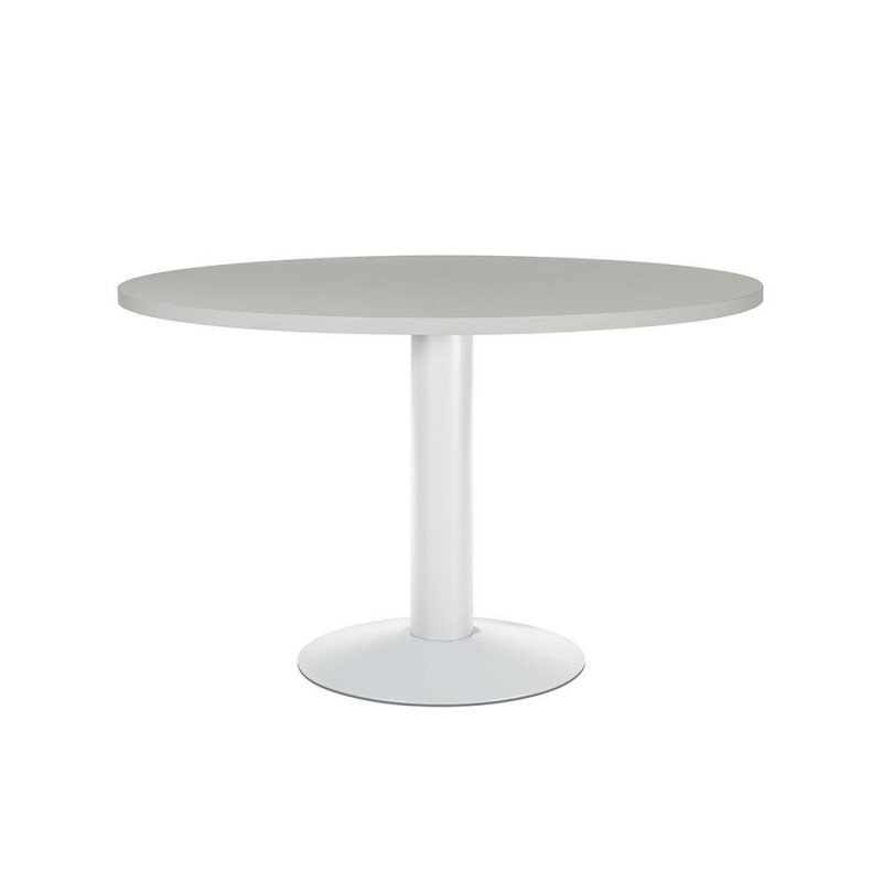 - Mesa de reunión - Forma circular - Sobre de melamina de 2,5 cm. de grosor - Canto de PVC de 2 mm. - Con pie de panel - Dimensiones: 120 cm. - Color: Aluminio - Gris