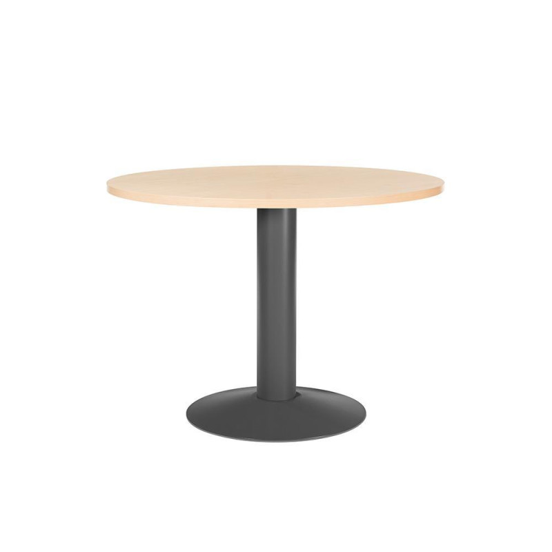 - Mesa de reunión circular - Ideal para la atención de clientes, proveedores o trabajos en grupo - Tablero fabricado en melamina - Pie de columna de plancha metálica pintada epoxy - Altura de la columna: 72cm.