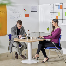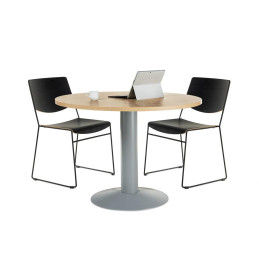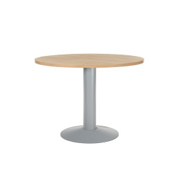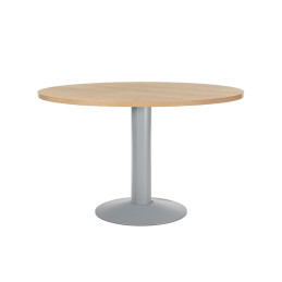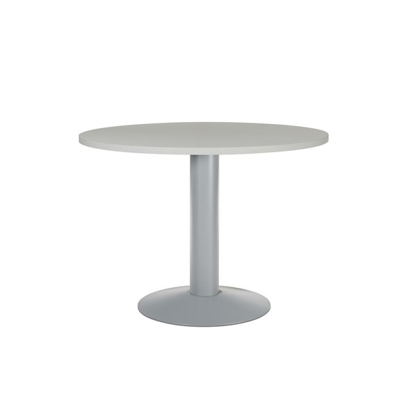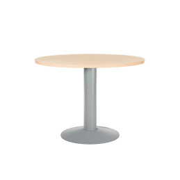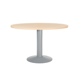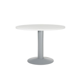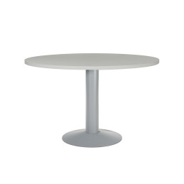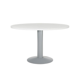 - Mesa de reunión - Forma circular - Sobre de melamina de 2,5 cm. de grosor - Canto de PVC de 2 mm. - Con pie de panel - Dimensiones: 120 cm. - Color: Aluminio - Blanco