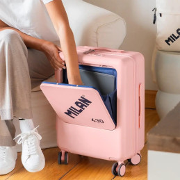 - Maleta de viaje ligera y resistente - Ideal como equipaje de mano - Cierre de cremallera con sistema TSA con combinación de tres dígitos - Maleta rígida y acabado rugoso - Con 4 ruedas dobles giratorias de 360°, silenciosas - Asa superior y lateral - Mango telescópico - 2 compartimentos interiores forrados - Compartimento frontal con bolsillos...