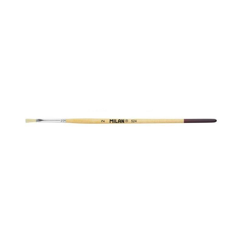 - Pincel plano con mango corto de madera - Barnizado en color natural y virola de aluminio - Composición: pelo natural de cerda Chungking - Adecuado para cola y barnices, témpera
