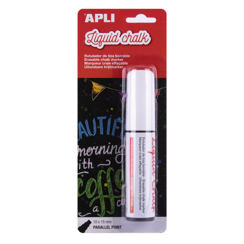 - Rotulador de tiza líquida - Punta cónica de 5,5mm. - Para escribir en pizarras, plástico, ventanas, espejos, vinilos, metal, etc. - Fácil de borrar con un paño húmedo - Secado rápido - Rotulador base agua libre de tóxicos