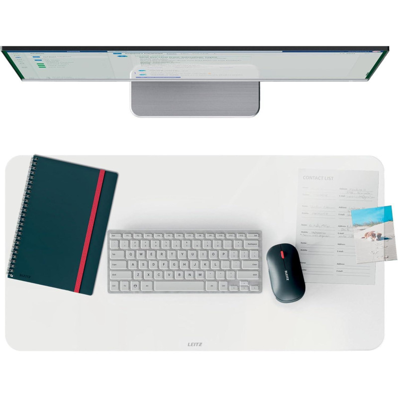Alfombrilla protectora de escritorio transparente para mantener tu escritorio limpio y ordenado. Gran superficie de 70x36cm para teclado, ratón, bloc de notas y accesorios. Compatible con todos los ratones láser y ópticos. Fácil de limpiar e impermeable. El material duradero protege tu escritorio de arañazos, rozaduras y salpicaduras. Antideslizante con esquinas redondeadas. Diseño transparente mate para ver los documentos que hay debajo, por ejemplo, fotos, calendarios, etc.. Enrollable para facilitar su transporte.