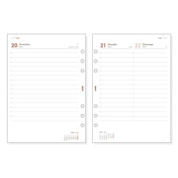 - Recambio anualidad - 2 días página - Uñero microerforado - 4 taladros - Para agendas de anillas - 12 meses (enero-diciembre)