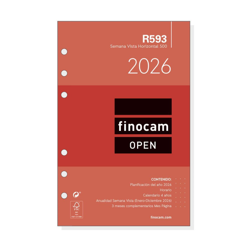 - Recambio anualidad - Semana vista - Uñero microerforado - 6 taladros - Para agendas de anillas - 12 meses (enero-diciembre)