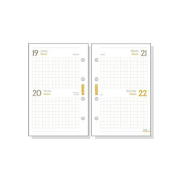 - Recambio anualidad - Semana vista - Uñero microerforado - 6 taladros - Para agendas de anillas - 12 meses (enero-diciembre)