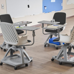 - Silla operativa ergonómica - Asiento tapizado en tela ignífuga - Respaldo regulable en altura con malla transpirable - Mecanismo de regulación sincro - Base de polímero con 5 radios - Ruedas de nailon - Brazos regulables