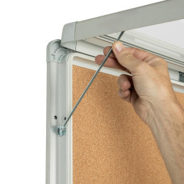 - Vitrina de anuncios para interior - Marco de aluminio adonizado - Fondo de corcho - Puertas batientes de vidrio acrílico - Cerradura de seguridad con 2 llaves - Incluye kit de montaje - Dimensiones exterior: 51x68cm - Dimensiones interior: 48x65,5cm - Capacidad: 4 x A4